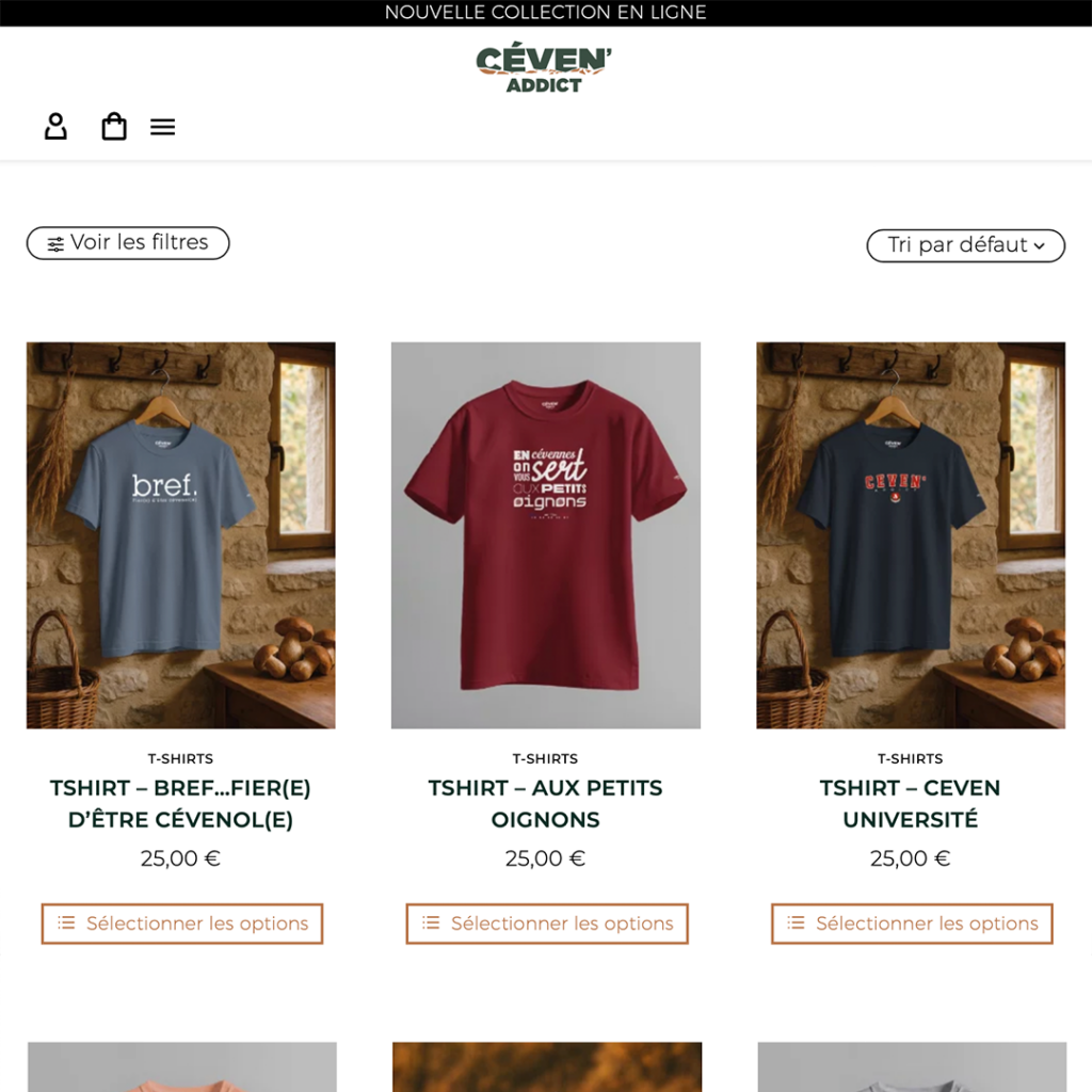 Dans le cadre du lancement de la marque Céven’Addict, une marque de vêtements inspirée de l’identité forte et authentique des Cévennes, j’ai accompagné le projet dans la création complète de son site e-commerce.